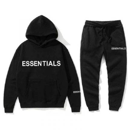 The Essentials Tracksuit is a versatile and stylish option for both casual wear and light athletic activity. Made from a comfortable cotton-blend fabric, it offers a relaxed fit with a minimalist design. The tracksuit features a hoodie or sweatshirt paired with matching joggers, both adorned with the signature “ESSENTIALS” branding. With ribbed cuffs, an elastic waistband, and practical pockets, it combines functionality with modern streetwear aesthetics. Available in neutral colors like black, beige, and grey, the Essentials Tracksuit is perfect for layering or wearing as a coordinated set, offering comfort and effortless style for any occasion.
